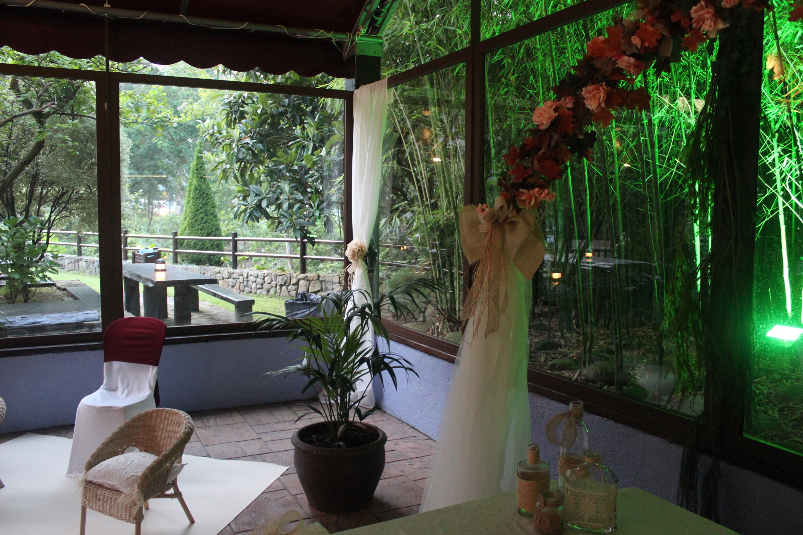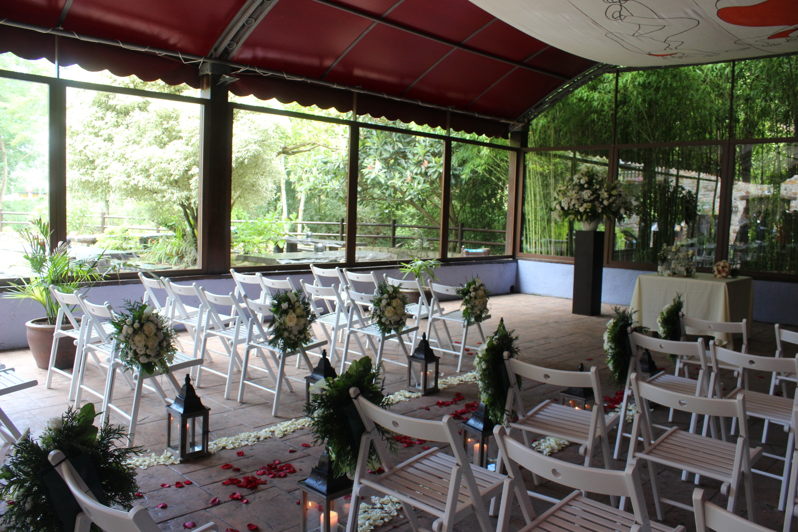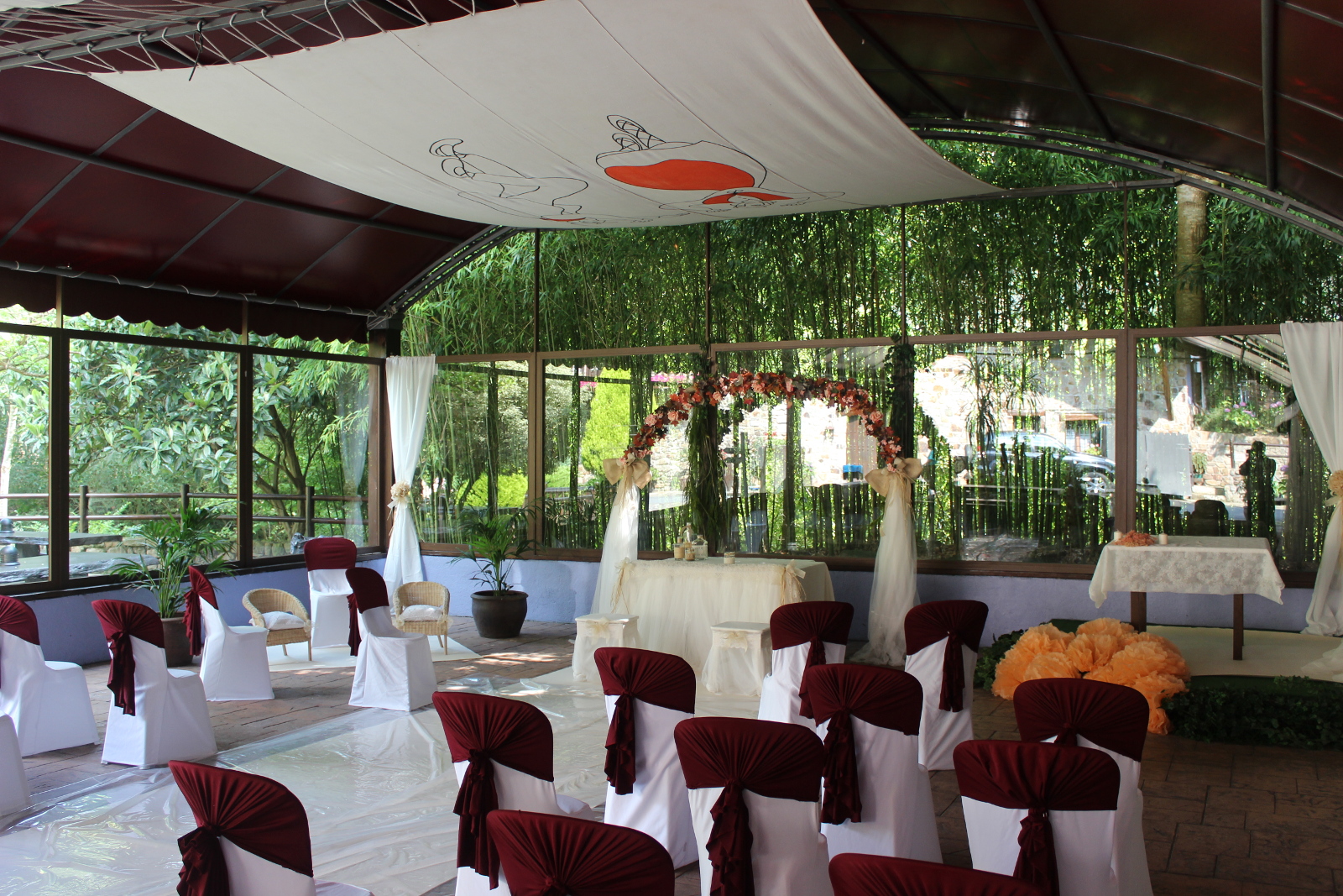 En 2007 diseñamos y creamos un espacio diáfano y acristalado con capacidad para 200 comensales donde se ofician las ceremonias civiles. Un espacio cubierto protegido del frío y del calor, contiguo a nuestro jardín y perfecto para enlaces civiles.