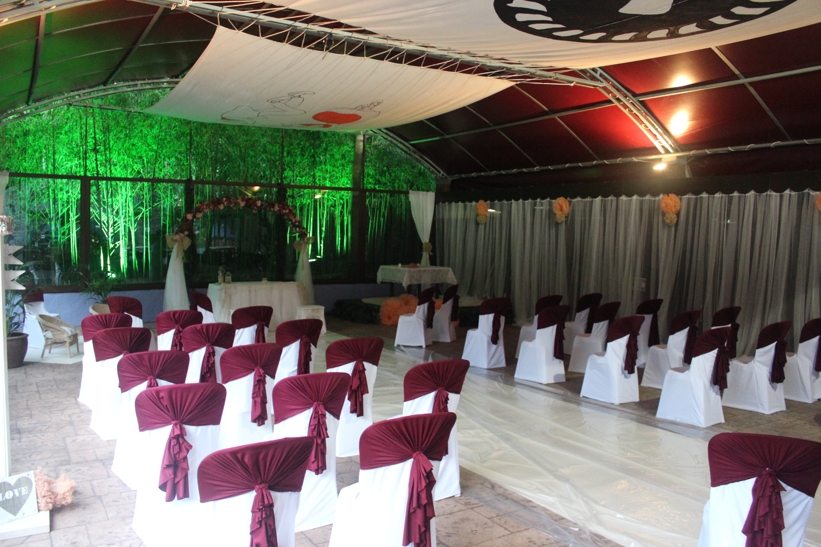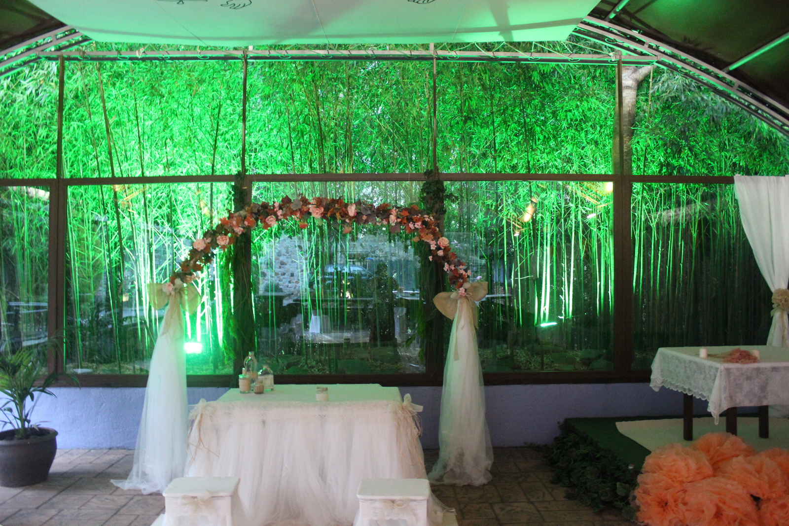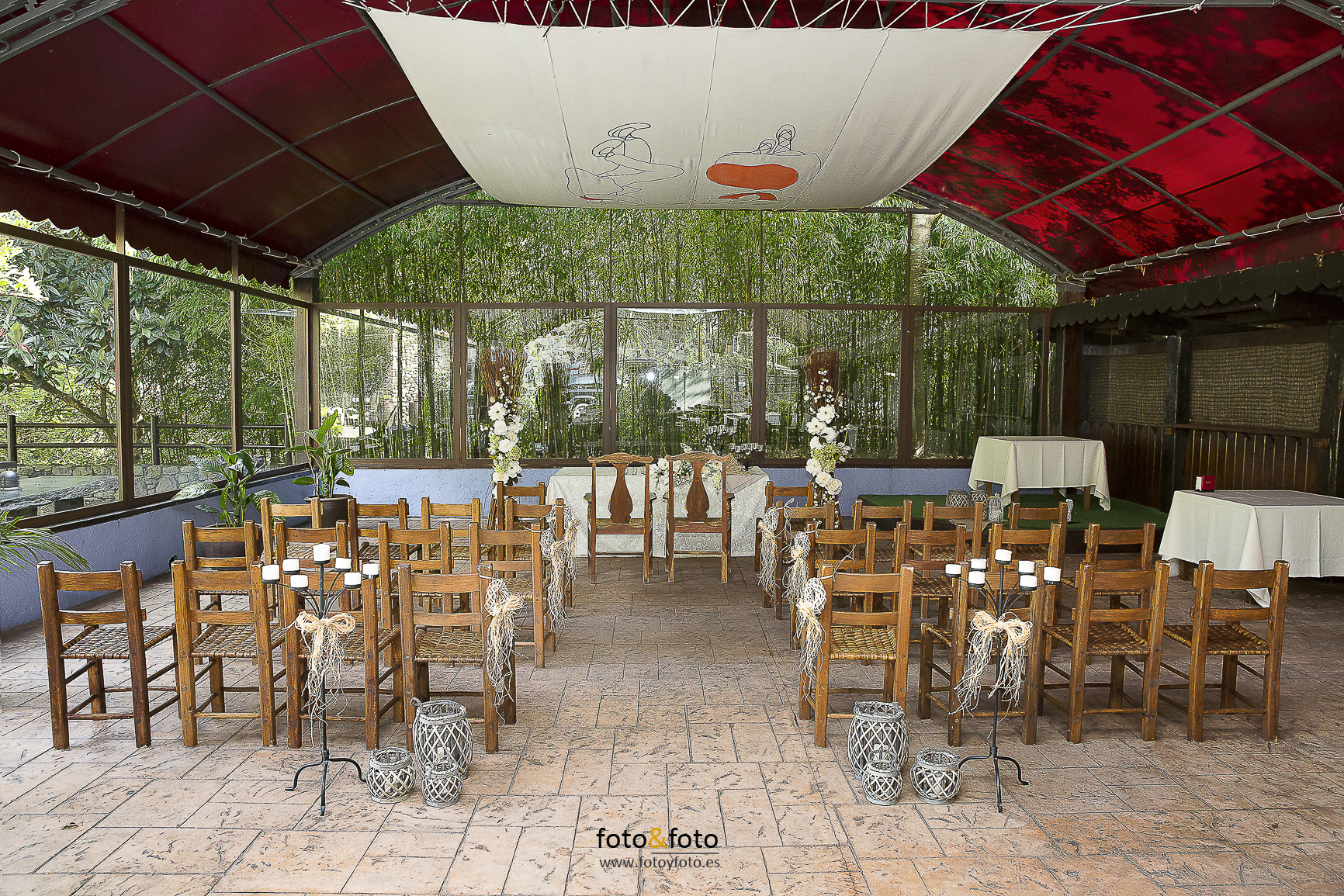 En 2007 diseñamos y creamos un espacio diáfano y acristalado con capacidad para 200 comensales donde se ofician las ceremonias civiles. Un espacio cubierto protegido del frío y del calor, contiguo a nuestro jardín y perfecto para enlaces civiles.